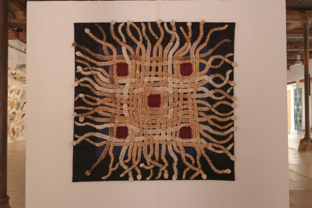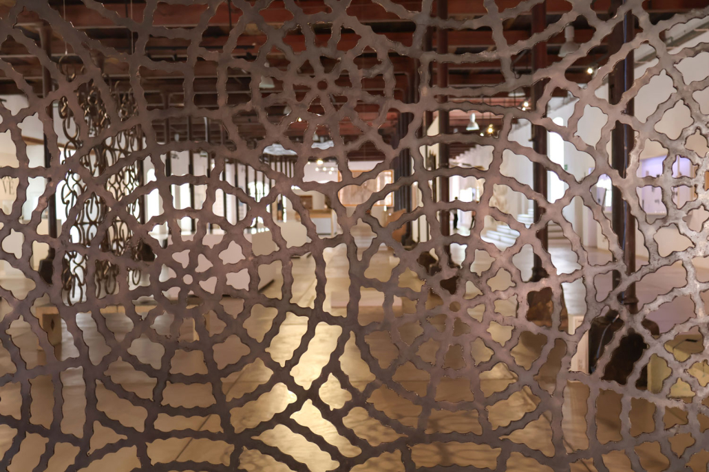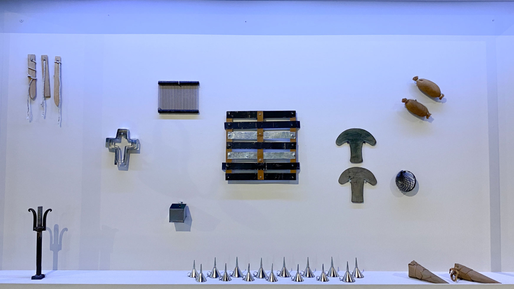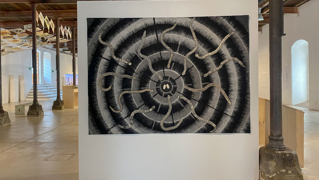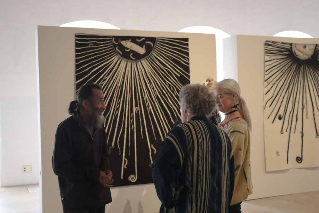 Cuando Francisco Toledo (1940—2019) tenía trece años, se mudó a la ciudad de Oaxaca para estudiar la secundaria. Hasta ese momento, sólo había vivido en poblaciones pequeñas, por lo que quedó deslumbrado con los diseños que encontró en las rejas, las esculturas y los pisos que formaban parte de la arquitectura de la ciudad —en los lugares donde había vivido sólo había conocido pisos de ladrillo y tierra—. Más adelante, viajó a la ciudad de México e ingresó a una escuela que preparaba a los alumnos para que integraran la arquitectura con el arte. «Y eso me dio la idea de que los artistas debían hacer cosas para que la gente pudiera tener, lo mismo un cuadro que un piso, un vitral, o un barandal», comentó Toledo. Es a partir de ese pensamiento que, décadas después, Toledo aplicó sus diseños a objetos y elementos arquitectónicos colaborando con talleres de Oaxaca. En esta exposición, se han limitado las cédulas. La intención del artista fue presentar, de manera mezclada, sus piezas junto a algunos objetos que lo habían inspirado. Buscaba que los visitantes encontrarán las relaciones y les sirviera para observar al mundo de una manera distinta. Quería mostrar no sólo lo que había creado sino también enseñar cómo Toledo ve.